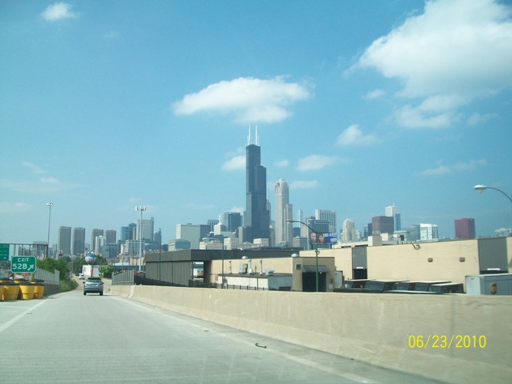 Driving on I-94 towards downtown Chicago